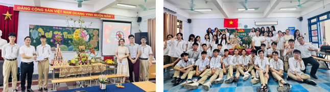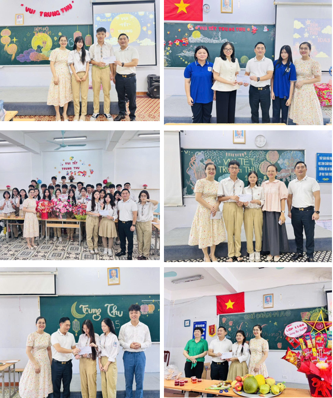 Trong không khí ấy, đại diện Hội đồng trường, Ban Giám hiệu và Công đoàn đã trực tiếp đến từng lớp để trao gửi những phần quà Trung thu đầy ý nghĩa. Đây không chỉ là món quà vật chất, mà còn là lời chúc, là sự động viên tinh thần, thể hiện sự quan tâm sâu sắc của nhà trường đối với các em học sinh. Những nụ cười, những ánh mắt rạng rỡ khi đón nhận quà đã làm nên một mùa Trung thu thật trọn vẹn yêu thương.
