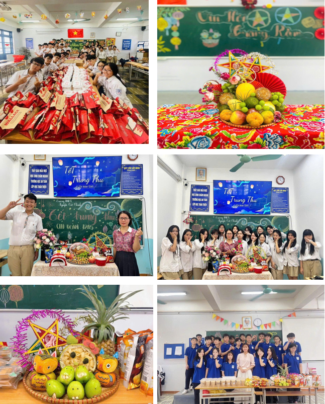 Ngay từ những ngày trước chương trình, các lớp đã cùng nhau lên ý tưởng chuẩn bị mâm cỗ Trung thu. Mỗi mâm cỗ không chỉ được trang trí cầu kỳ, nhiều màu sắc, mà còn chứa đựng sự sáng tạo và tinh thần đoàn kết của tập thể học sinh. Những chiếc bánh nướng, bánh dẻo, trái cây nhiều loại cùng cách bày biện khéo léo đã tái hiện không khí Trung thu truyền thống, đồng thời thể hiện sức trẻ, sự năng động của tuổi học trò.